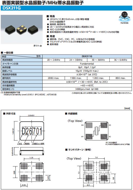 周波數許容偏差 | ±20×10−6 (at 25℃) | ||||||||||