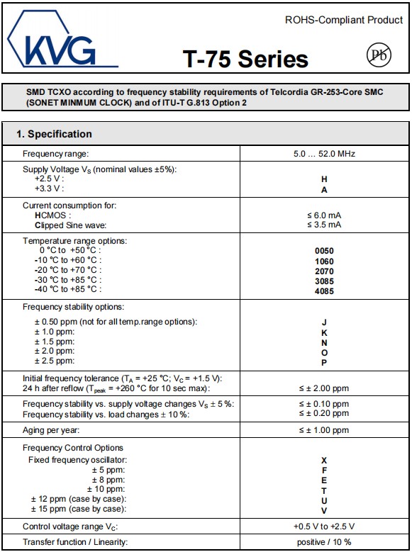 T-75,T-75A2070KXH-24.000MHz,7050mm,KVG低電壓晶振,HCMOS輸出晶振,溫補晶體振蕩器,參數表