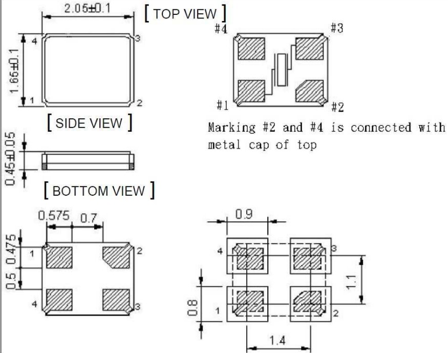 XMP-12132-A1-12pF-24MHz,2016mm,24MHz,KVG超小型晶振,XMP-12100,智能手機晶振,尺寸圖