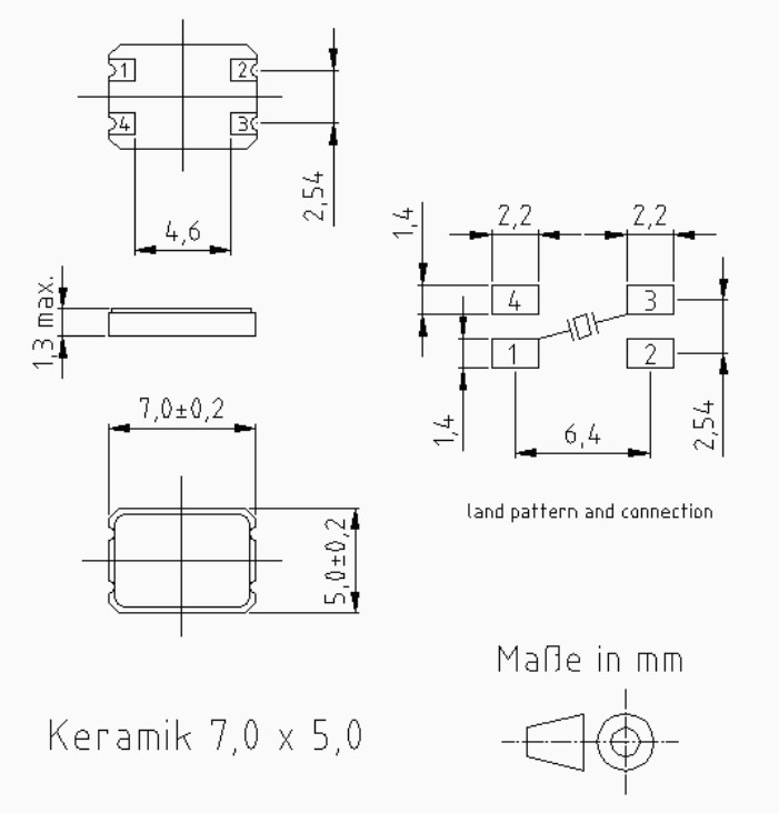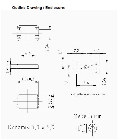 外形尺寸:7.0x5.0mm陶瓷SMD包