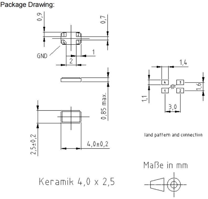 XMP-9135-5E-18pF-33MHz,4025mm,33MHz,KVG石英晶振,XMP-9100,四腳貼片晶振,尺寸圖