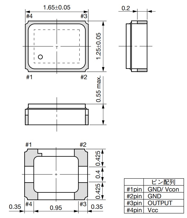 KT1612A,KT1612A52000ECW18TAA,52MHz,Kyocera低電壓晶振,SMD晶振,溫補(bǔ)晶體振蕩器,尺寸圖