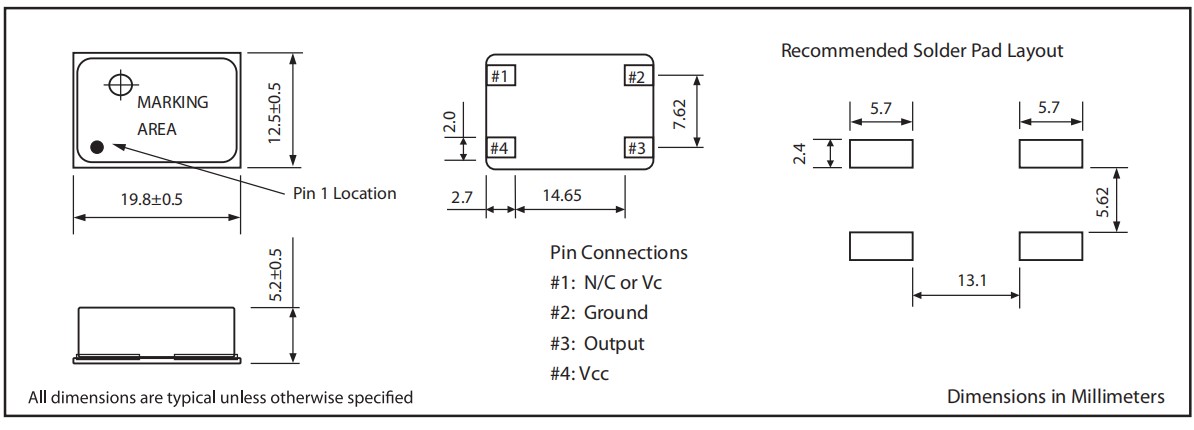 MTI-milliren米利倫晶振,401系列TCXO振蕩器,低相位噪聲晶振,GPS定位晶振,通訊設(shè)備晶振,尺寸圖