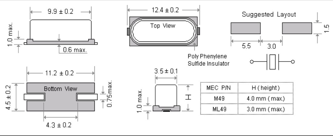 Item / Type | M49 ( 12.4 * 4.5 * 4.0mm ) series | ML49 ( 12.4 * 4.5 * 3.0mm ) series |