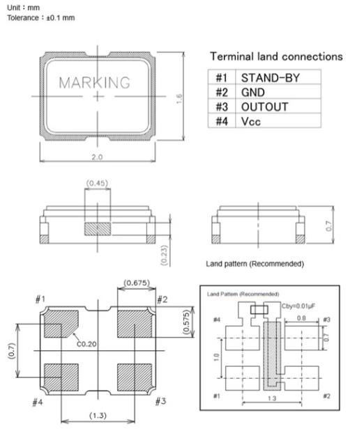 NDK汽車電子專用晶振|NZ2016SH-24.000MHZNSC5022C|2016|1.8V 尺寸圖