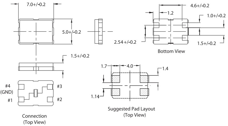 NF7-36.860-B-A-B-B-32pF,7050mm,36.860MHz,NEL晶振,NF7,石英晶體諧振器,尺寸圖