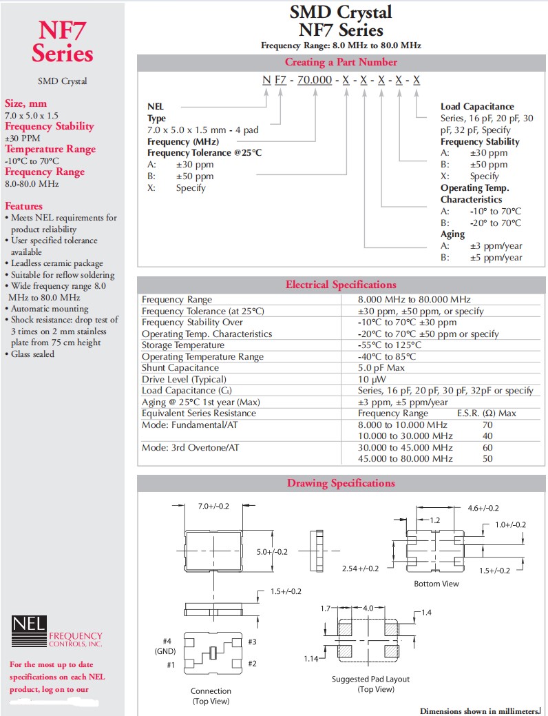 NF7-36.860-B-A-B-B-32pF,7050mm,36.860MHz,NEL晶振,NF7,石英晶體諧振器,參數表