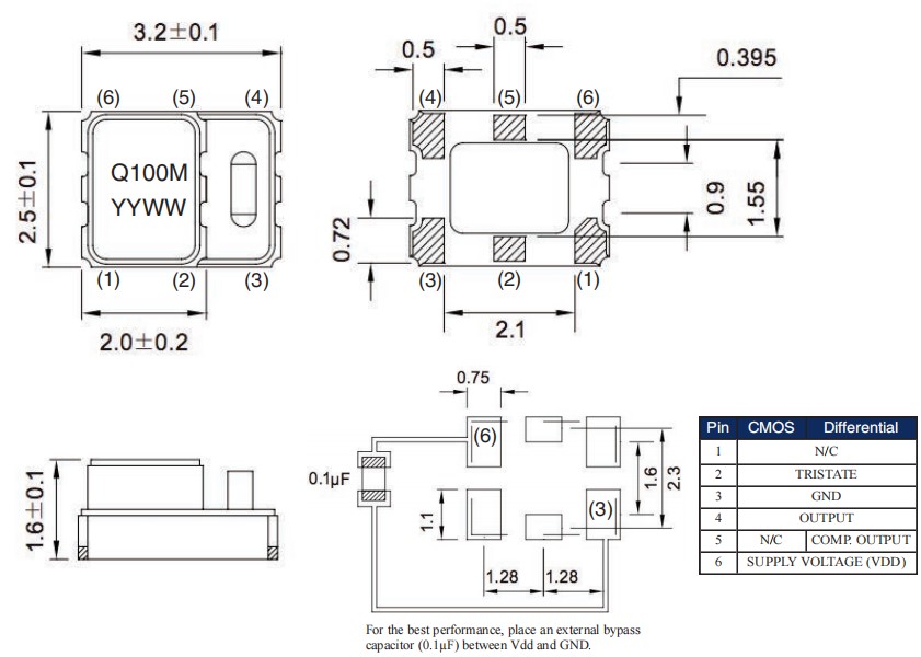 QTCT236LPB-125.000000,3225mm,125MHz,Q-Tech路由器晶振,QTCT236,差分晶振,尺寸圖