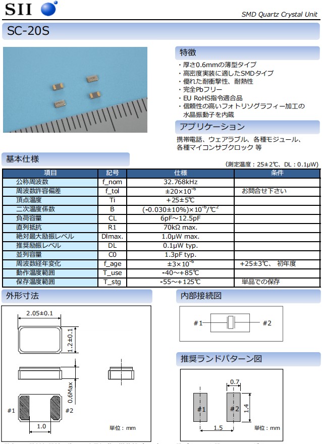 Q-SC20S0322070CAAF | Seiko精工晶振 | SC-20S | kHz Crystal (Tuning Fork) | 32.768kHz | ±20ppm |