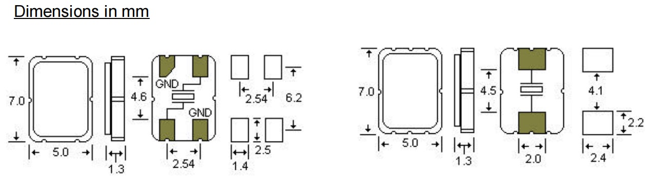 AAS35M000000DJH20H,7050mm,35MHz,STD品牌,微處理晶體,無線應用晶振,尺寸圖