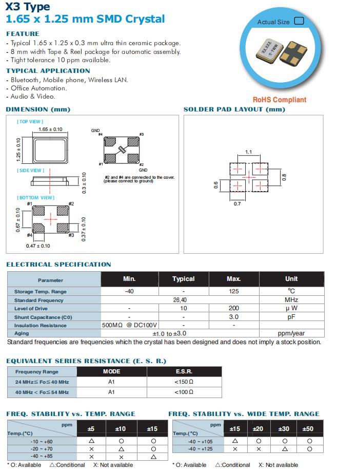 X3LEEJNANF-26.000000 | Taitien晶振 | X3 | MHz Crystal | 26MHz | -40°C ~ 105°C |