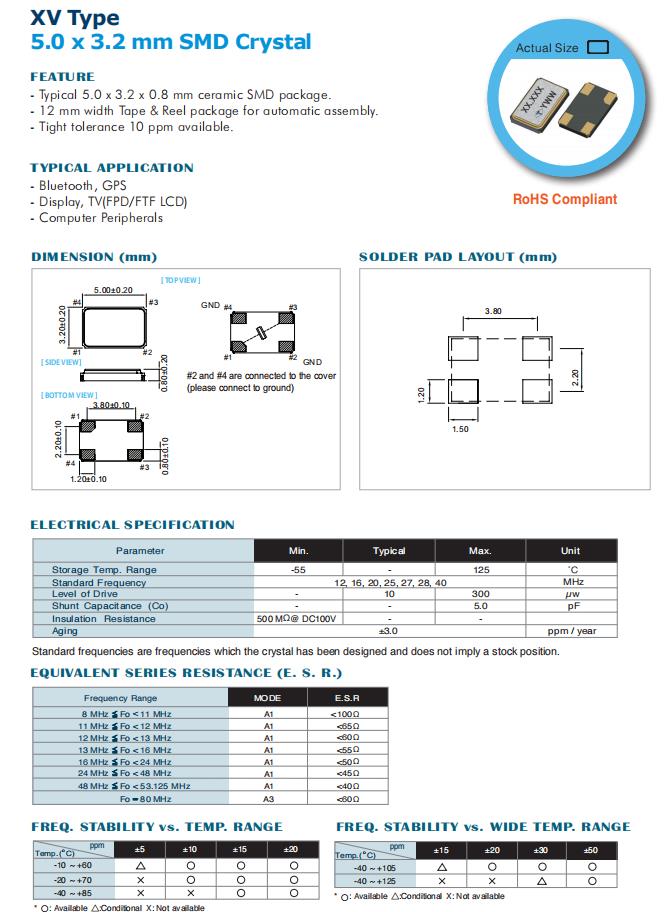 XVDGGHNANF-20.000000 | Taitien晶振 | XV | MHz Crystal | 20MHz | -40°C ~ 125°C |