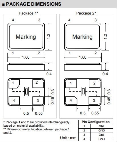 激勵功率 | DL | 1.0μW Max. | 推薦:100μW ~ 300μW |