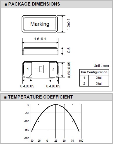 激勵功率 | DL | 1.0μW Max. | 推薦:100μW ~ 300μW |