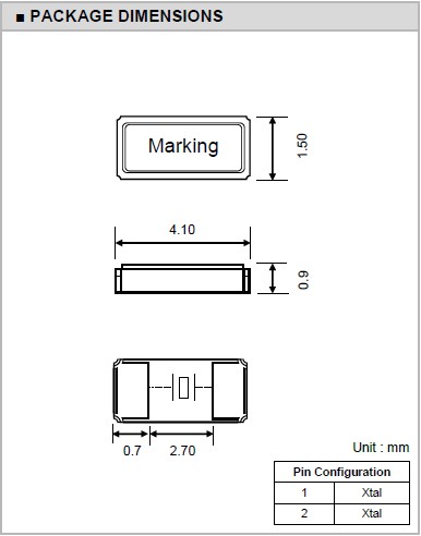 激勵功率 | DL | 1.0μW Max. | 推薦:100μW ~ 300μW |
