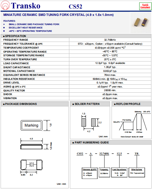Transko晶振 | 單位 | CS52晶振 | 石英晶振基本條件 |