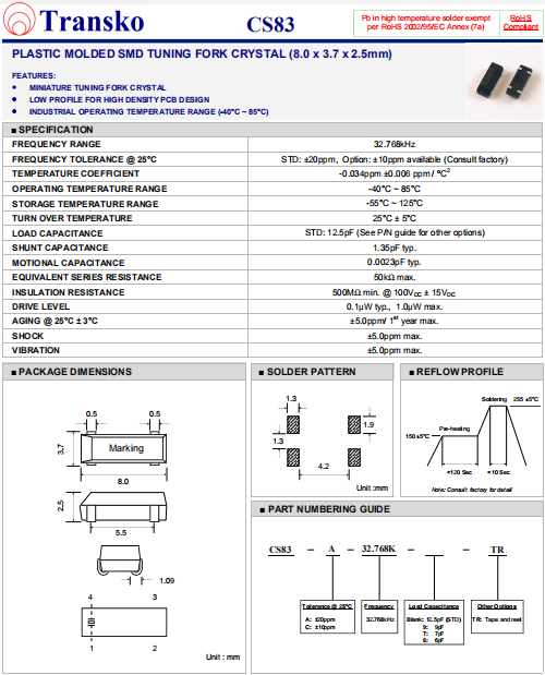 Transko晶振 | 單位 | CS83晶振 | 石英晶振基本條件 |