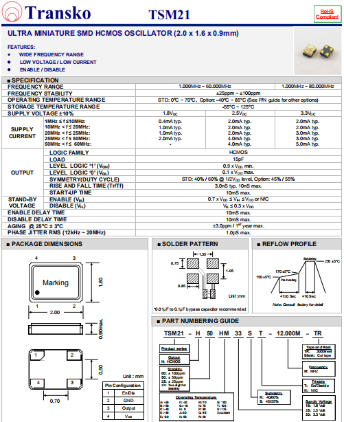 Transko晶振,TSM21晶振,低抖動石英振蕩器.智能手機晶振,產(chǎn)品具有高精度超小型的表面貼片型石英晶體振蕩器,最適用于移動通信終端的基準時鐘等移動通信領域.比如智能手機,無線通信,衛(wèi)星導航,平臺基站等較高端的數(shù)碼產(chǎn)品,晶振本身小型,薄型具備各類移動通信的基準時鐘源用頻率,貼片晶振具有優(yōu)良的電氣特性,耐環(huán)境性能適用于移動通信領域,滿足無鉛焊接的高溫回流溫度曲線要求.