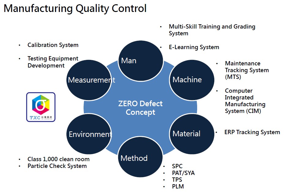 在TXC晶技,質量是全體員工共有的理念,其質量管理體系被設計為確保所有最終端產品都處于有效運作狀態.TXC晶振的質量方針是為我們的客戶提供世界級的產品的承諾.所有TXC晶技公司的產品都通過了ISO-14001和ISO 9001認證,并符合RoHS無鉛(PB)標準.我們的產品也達到了UL94 -旁白對所有使用的環氧樹脂材料的要求,額定氧指數最低為28%.
