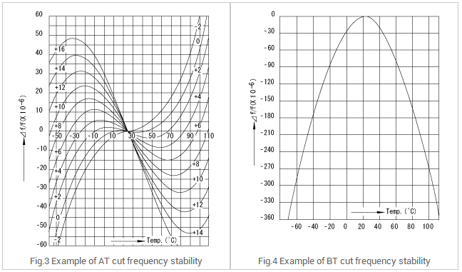 “FA-238V 12.0000MB-K3”水晶的頻率溫度特征分為兩種類型根據其曲線的形狀.一個是三次曲線,另一個是二次曲線.在和削減BT的典型頻率溫度特征圖3和圖4所示,分別.削減在水晶單位是最廣泛使用的,因為他們產生較小的頻率的變化反應在室溫溫度變化范圍.