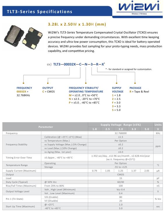 WI2WI晶振,TLT3四腳有源晶振,TLT3-00032X-CN3RX晶振,溫補晶振(TCXO)產品本身具有溫度補償作用,高低溫度穩定性:頻率精度高0.5PPM-2.0PPM,工作溫度范圍:-30度至85度,電源電壓:1.8V-3.3V之間可供選擇,產品本身具有溫度電壓控制功能,世界上最薄的晶振封裝,頻率:26兆赫,33.6兆赫,38.4兆赫,40兆赫,因產品性能穩定,精度高等優勢,被廣泛應用到一些比較高端的數碼通訊產品領域,GPS全球定位系統,智能手機,WiMAX和蜂窩和無線通信等產品,符合RoHS/無鉛.