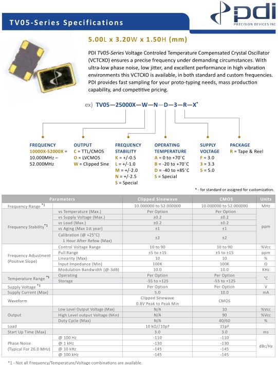 WI2WI歐美晶振,TV05壓控溫補晶體振蕩器,TV05-16000X-WND3RX晶振,5032mm體積的石英晶體振蕩器,有源晶振,該產品可驅動2.5V的溫補晶振,壓控晶振,VC-TCXO壓控溫補晶振產品,電源電壓的低電耗型,編帶包裝方式,可對應自動高速貼片機自動焊接,及IR回流焊接(無鉛對應),為無鉛產品,超小型,質地輕.產品被廣泛應用到集成電路,程控交換系統,無線發射基站.