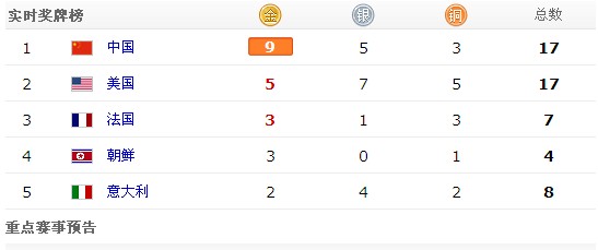 目前各國家的戰(zhàn)況 以目前的情況來看我們國家遠(yuǎn)遠(yuǎn)要超過其它國家,讓我們一起來為中國的運動健兒們加油,你們是最棒的