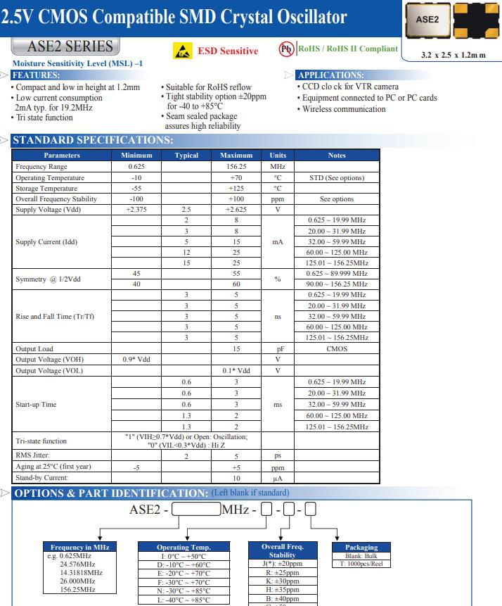 ASE2-12.500MHZ-ET | Abracon晶振 | ASE2 | XO (Standard) | 12.5MHz | 2.5V | -20°C ~ 70°C |