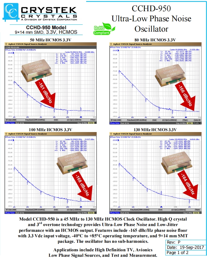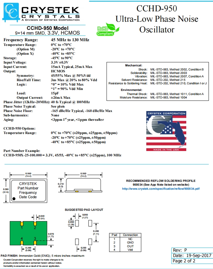 CCHD-950X-50-80.000 | CRYSTEK振蕩器 | CCHD-950 | XO (Standard) | 80MHz | ±50ppm | 0°C ~ 70°C |