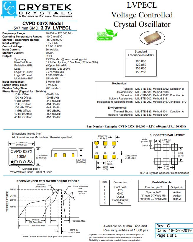 CVPD-037X-100 | CRYSTEK晶振 | CVPD-037X | Active | VCXO | 100MHz | - | -40°C ~ 85°C |