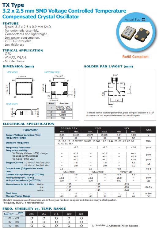 TXEADDSANF-40.000000 Taitien TX VCTCXO壓控溫補(bǔ)晶振 40MHz 2.8 V ~ 3.3 V