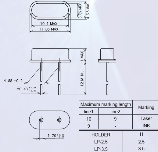 激勵功率 | DL | 200μW Max. | 推薦:1μW ~ 100μW |