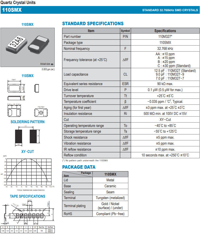SMI晶振 | 單位 | 110SMX晶振 | 石英晶振基本條件 |