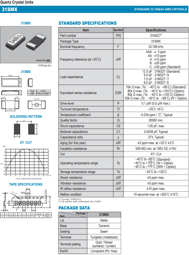 SMI晶振 | 單位 | 31SMX晶振 | 石英晶振基本條件 |