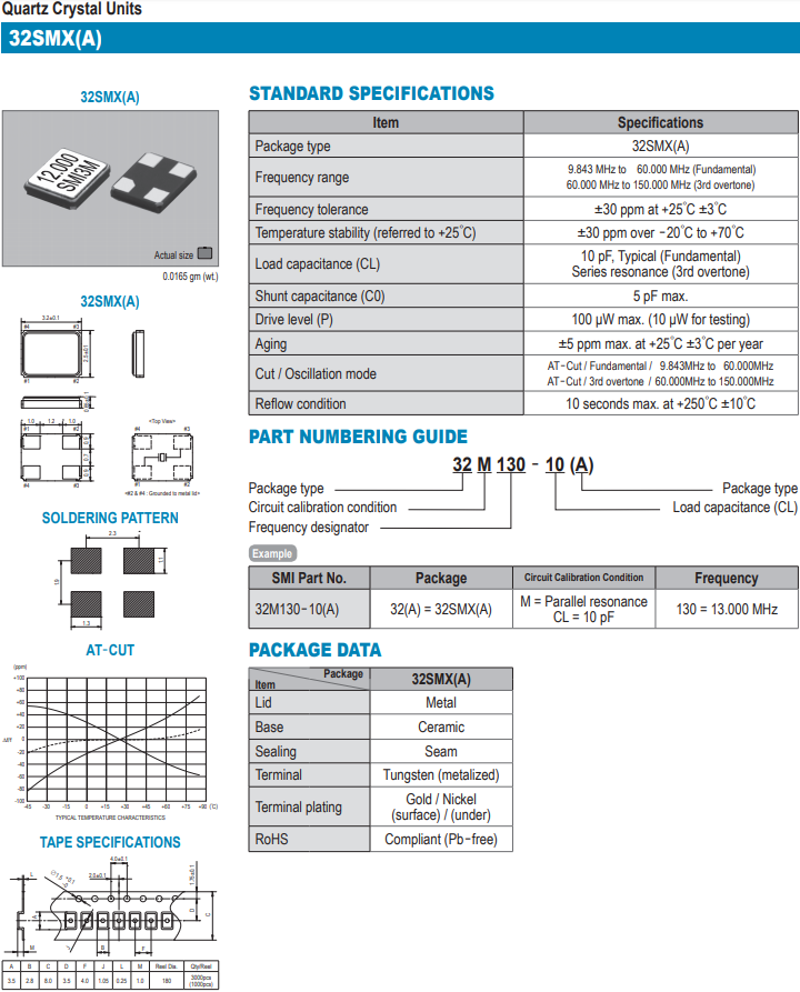 SMI晶振 | 單位 | 32SMX(A)晶振 | 石英晶振基本條件 |