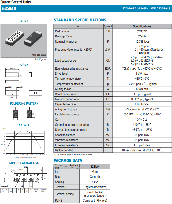 SMI晶振 | 單位 | 52SMX晶振 | 石英晶振基本條件 |