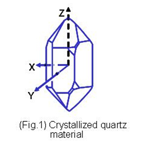 石英是由硅原子和氧原子組合而成的二氧化硅(Silicon Dioxide, SiO2), 以32點(diǎn)群的六方晶系形成的單結(jié)晶結(jié)構(gòu)﹝圖一﹞.單結(jié)晶的石英晶體結(jié)構(gòu)具有壓電效應(yīng)特性, 當(dāng)施加壓力在晶體某些方向時, 垂直施力的方向就會產(chǎn)生電氣電位. 相對的當(dāng)以一個電場施加在石英晶體某些軸向時, 在另一些方向就會產(chǎn)生變形或振動現(xiàn)象. 掌握單結(jié)晶石英材料的這種壓電效應(yīng), 利用其發(fā)生共振頻率的特性, 發(fā)揮其精確程度作為各類型頻率信號的參考基準(zhǔn), 就是水晶震蕩器的設(shè)計(jì)與應(yīng)用. 因?yàn)槭⒕w具有很高的材料Q值,所以絕大部份的頻率控制組件,如共振子及振蕩器,都以石英材料為基礎(chǔ). 以石英為基礎(chǔ)的頻率控制組件可以依其壓電振動的屬性, 可以分為體波(bulk wave)振動組件及表面聲波(surface acoustic wave)振動組件. 體波振動組件如石英晶體共振子, 石英晶體濾波器及石英晶體振蕩器, 表面波振動組件如表面波濾波器及表面波共振子. 當(dāng)石英晶體以特定的切割方式, 以機(jī)械加工方式予以表面研磨, 完成特定的外型尺寸就是通稱的石英芯片(quartz wafer 或 quartz blank ). 將這個石英芯片放置在真空還境中, 于表面鍍上電極后,再以導(dǎo)電材料固定在金屬或是陶瓷基座上, 并加以封裝, 就成為一般所謂的石英晶體共振子( quartz crystal resonator ). 利用石英共振子在共振時的低阻抗特性及波的重迭特性, 用鄰近的雙電極, 可以做出石英晶體濾波器. 將石英振蕩子加上不同的電子振蕩線路, 可以做成不同特性的石英振蕩器. 例如: 石英頻率振蕩器(CXO), 電壓控制石英晶體振蕩器(Voltage Controlled Crystal Oscillator, VCXO), 溫度補(bǔ)償石英晶體振蕩器(Temperature Compensated Crystal Oscillator, TCXO), 恒溫槽控制石英晶體振蕩器(Oven Controlled Crystal Oscillator, OCXO)…等. 相對于體波諧振的是表面聲波的諧振. 將石英晶體表面鍍以叉狀電極(inter-digital-transducer, IDT)方式所產(chǎn)生的表面振蕩波, 可以制造出短波長(高頻率)諧振的表面聲波共振子(SAW Resonator)或表面聲波濾波器(SAW Filter).
