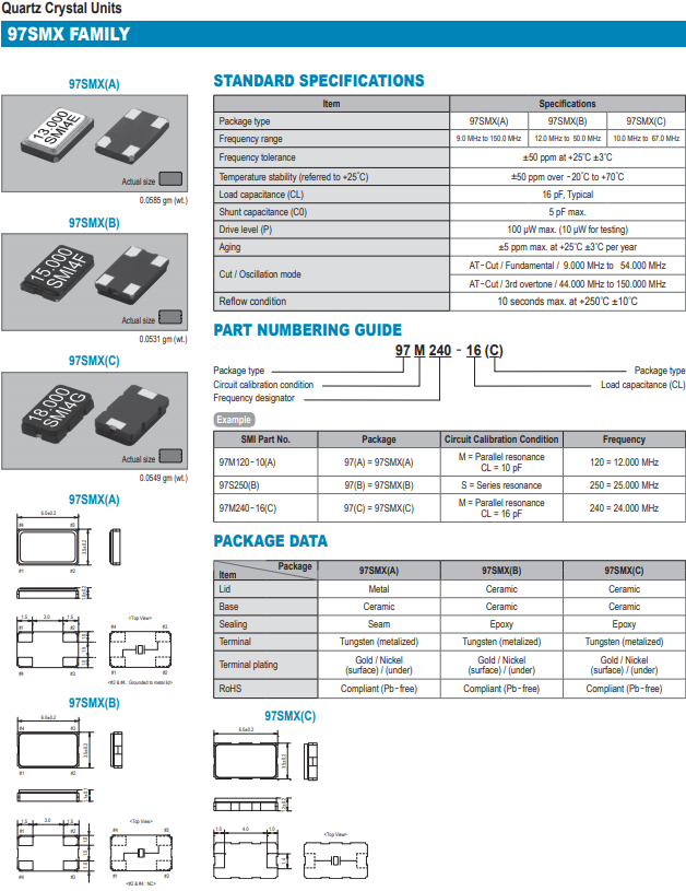SMI晶振 | 單位 | 97SMX(A)晶振 | 石英晶振基本條件 |