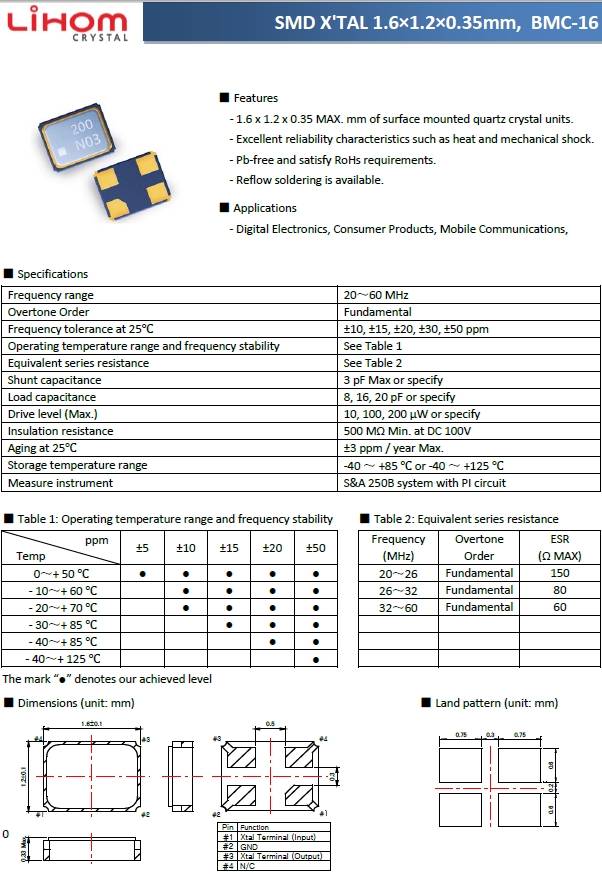 Lihom晶振 | 單位 | BMC-16晶振 | 石英晶振基本條件 |