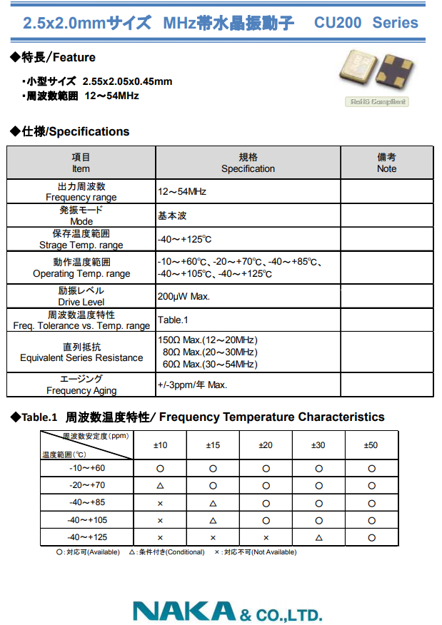 NAKA晶振 | 單位 | CU200晶振 | 石英晶振基本條件 |
