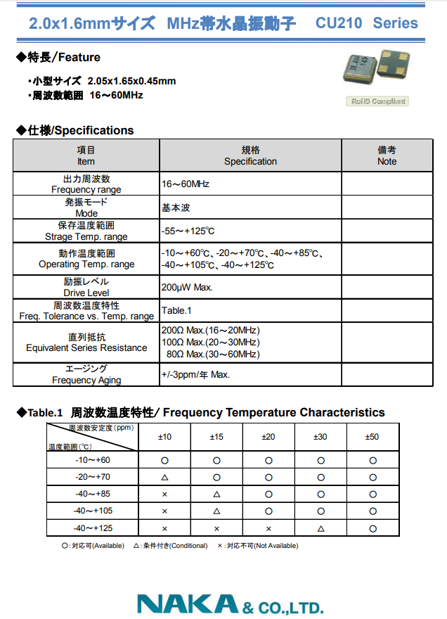 NAKA晶振 | 單位 | CU210晶振 | 石英晶振基本條件 |