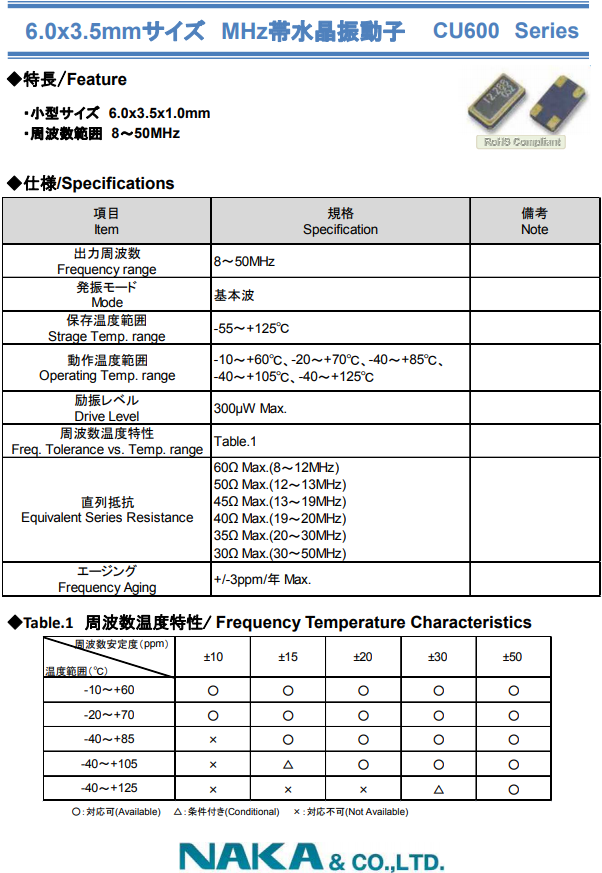 NAKA晶振 | 單位 | CU600晶振 | 石英晶振基本條件 |