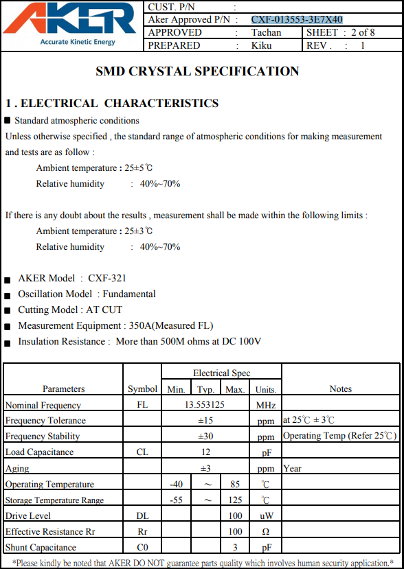 AKER晶振,CXF-013553-3E7X40晶體諧振器,CXF-321壓電晶體