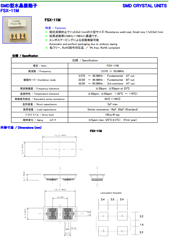 富士晶振 | 單位 | FSX-11M晶振 | 石英晶振基本條件 |