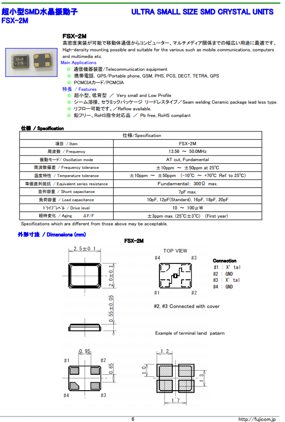 富士晶振 | 單位 | FSX-2M晶振 | 石英晶振基本條件 |