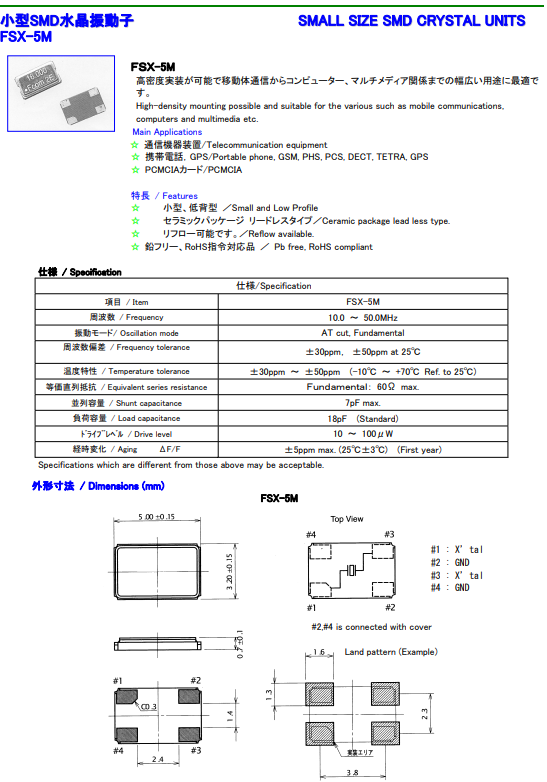 富士石英晶體 | 單位 | FSX-5M晶振 | 石英晶振基本條件 |