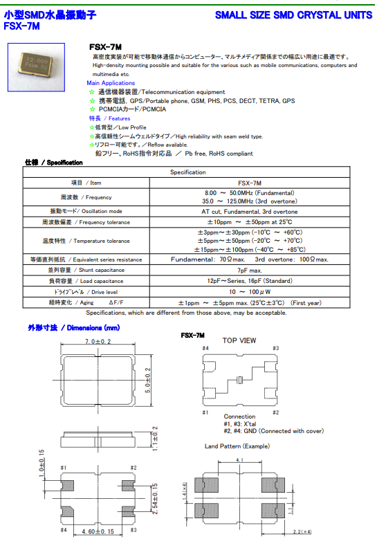 富士晶振 | 單位 | FSX-7M晶振 | 石英晶振基本條件 |