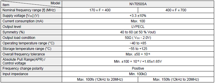 進口NDK晶振,NV7050SA振蕩器,智能手機有源晶振,7.0×5.0mm 的陶瓷封裝品,可對應至700MHz,廣的可變范圍:絕對頻率可變范圍 (APR) Min. 100×10-6,低電源電壓:+3.3V.