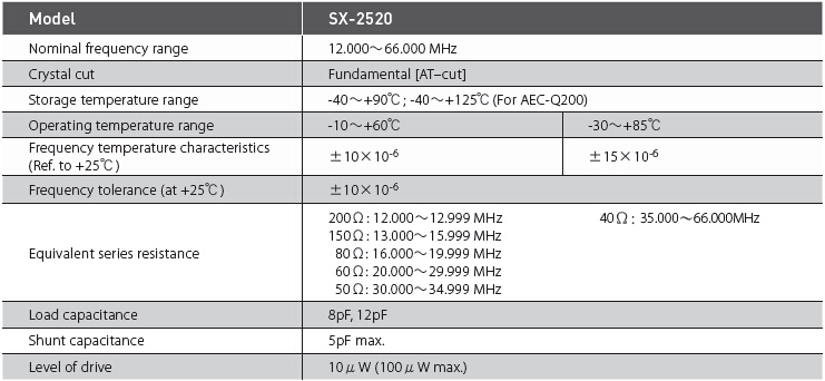 SX-2520貼片晶振,SX2016,SX1612諧振器,希華晶振原裝正品,超細(xì)/維度(2.5×2.0×0.55mm),陶瓷SMD包裝,真空接縫密封,緊公差和穩(wěn)定性,Reow焊接/浮雕錄制,AEC-Q200兼容的產(chǎn)品,應(yīng)用程序移動(dòng)通信,藍(lán)牙,無(wú)線局域網(wǎng).