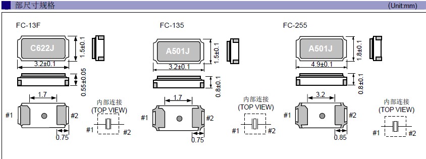 FC-135晶體諧振器,32.768K系列晶體,愛普生晶振代理商,“FC-135 32.7680KA-K3”小型化3.2*1.5*0.8mm,頻率范圍32.768KHZ,此款SMD晶體并且可以承受回流焊接的高溫,波峰焊接,回流焊接等,貼片表晶主要特點是該產(chǎn)品排帶包裝,焊接模式主要使用SMT焊接,給現(xiàn)代SMT工藝帶來高速的工作效率.